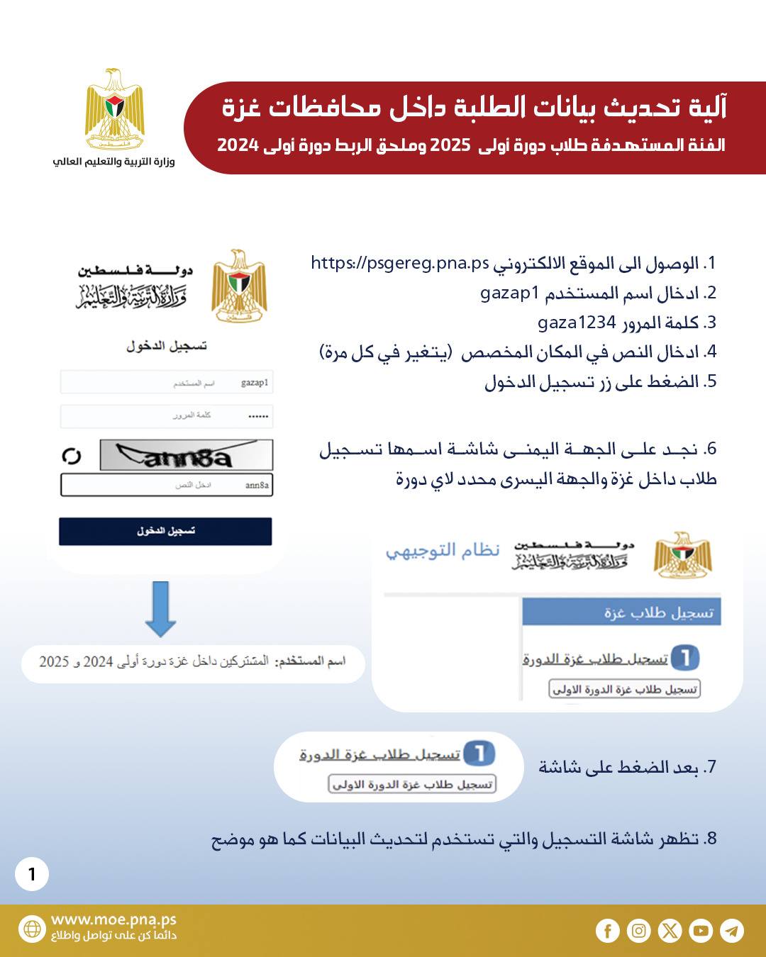 إعلان هام لطلبة قطاع غزة مواليد 2006