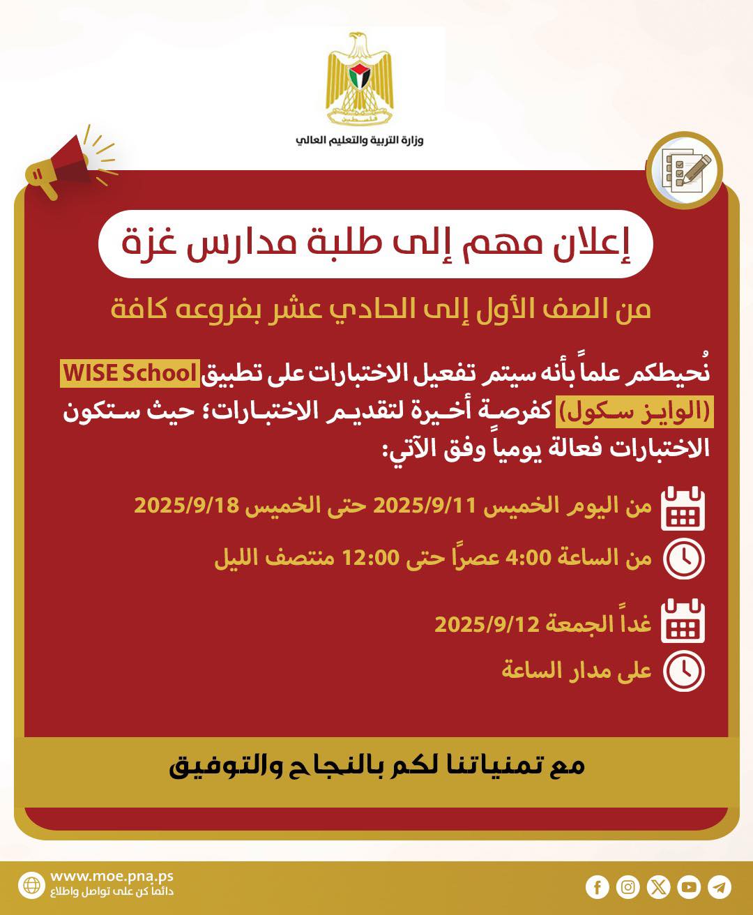 إعلان هام لطلبة قطاع غزة مواليد 2006